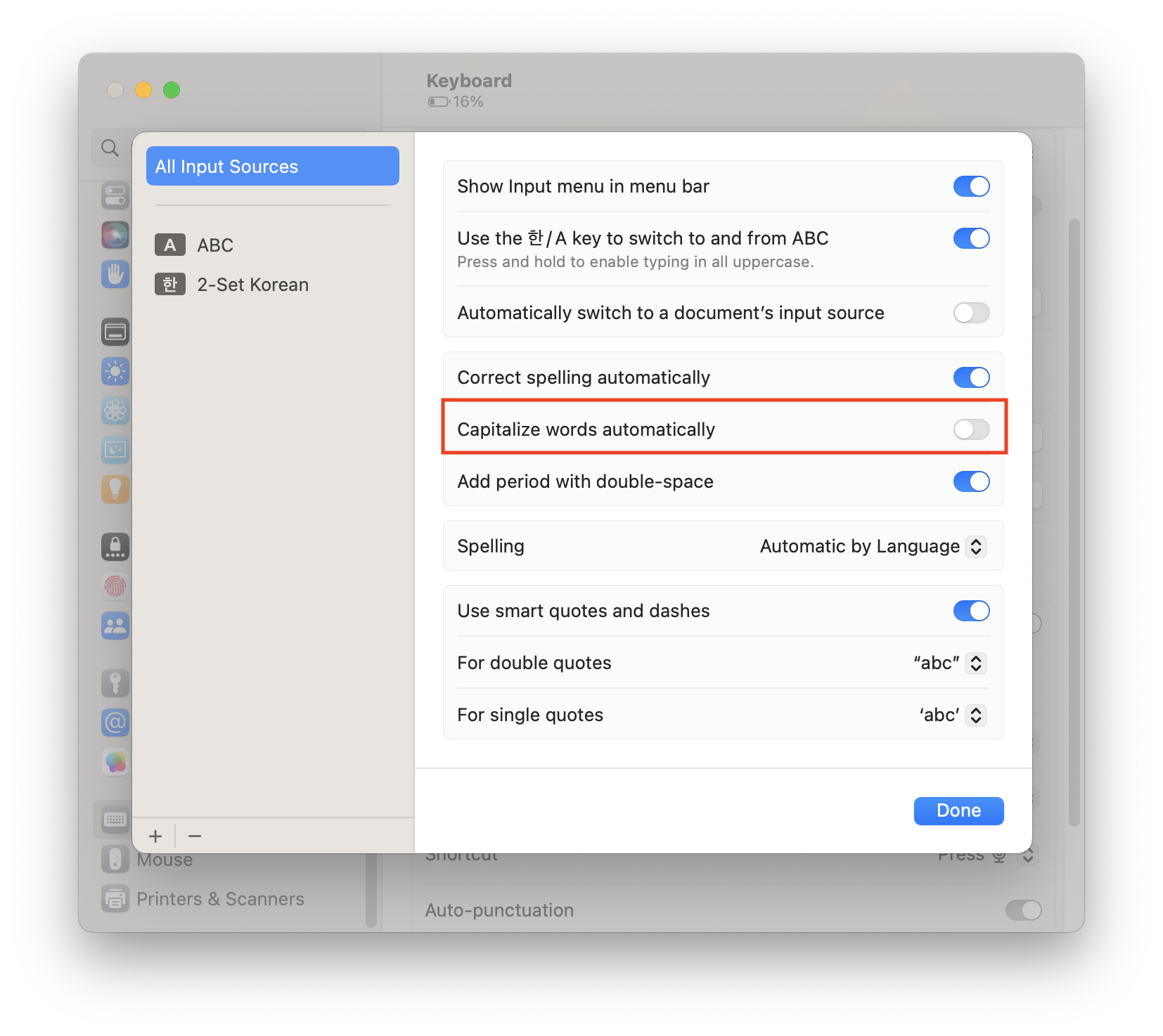 System Setting -> Keyboard -> Text Input / Input Sources -> Edit