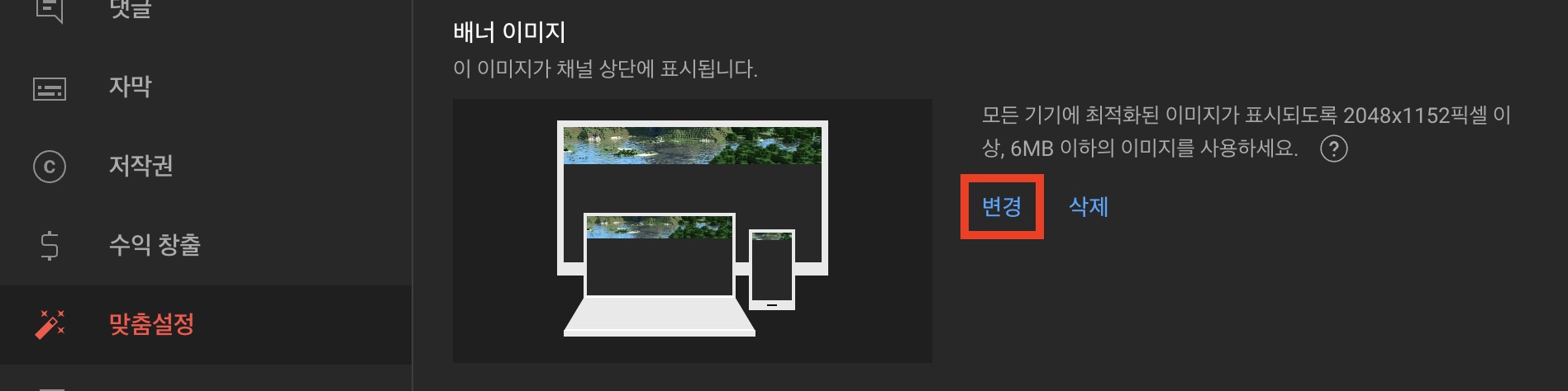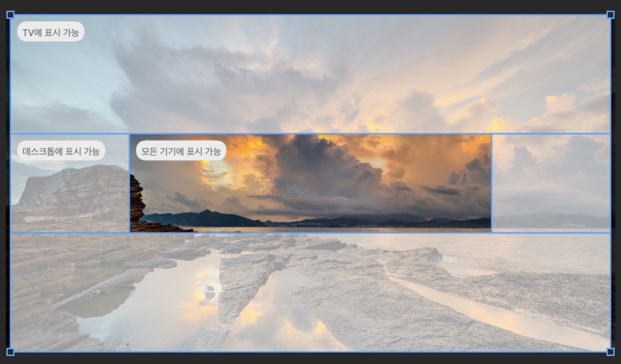 16:9 사이즈의 이미지를 업로드 하면, 유튜브는 각 디바이스에 맞게 이미지를 크롭핑 해서 사용합니다.