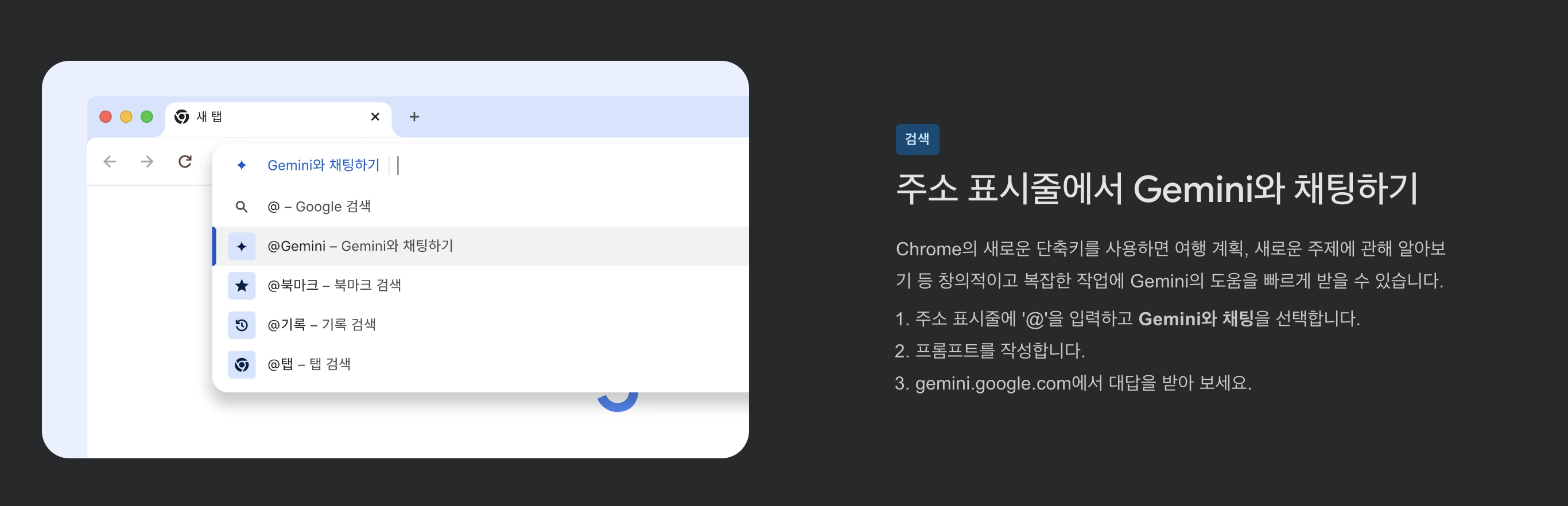 보시는 것처럼, 주소창에 @gemini를 입력하면 간단한 프롬프트창이 나옵니다.