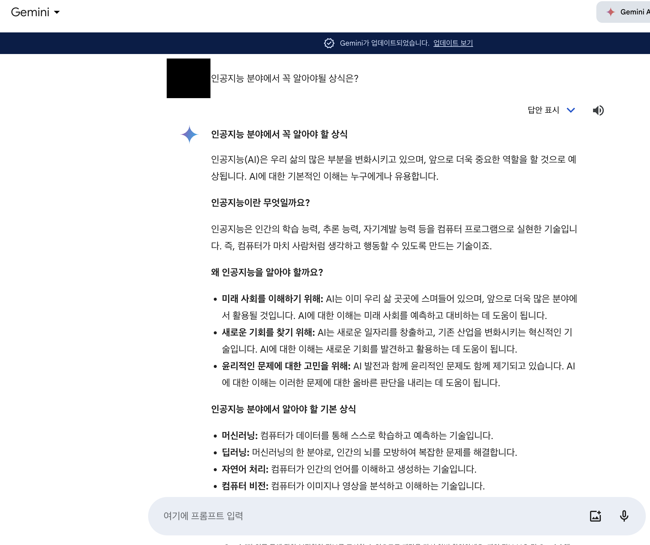 그러면, 제미나이 웹앱 사이트로 프롬프트롤 가져가서 답변을 보여줍니다.