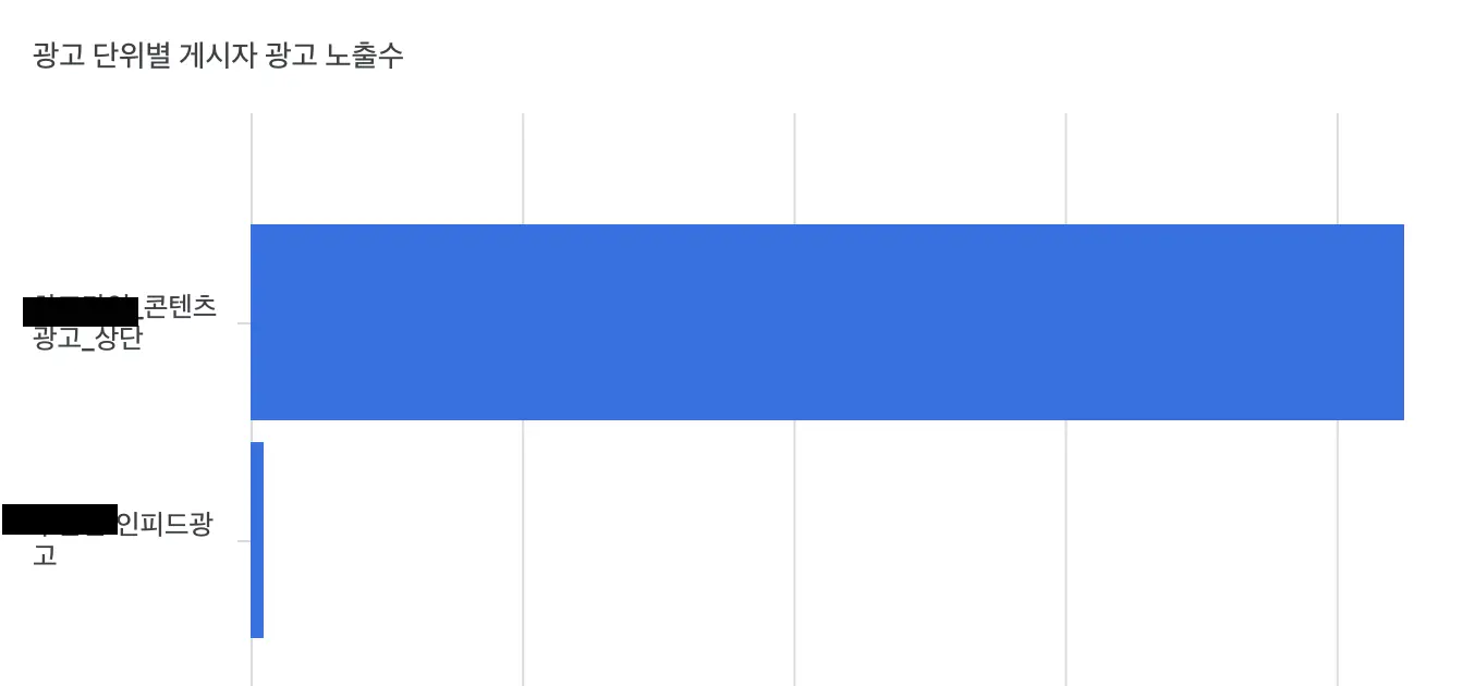아래 그래프를 보겠습니다. 상단 광고가 전체 광고수익의 대부분을 차지하는 것을 보여줍니다.