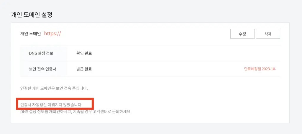 예상 컨데, 개인 도메인을 사용하고, 10월 11일이후 인증서가 갱신되어야 하는 블로그의 경우 접속이 안되는 오류가 있습니다.