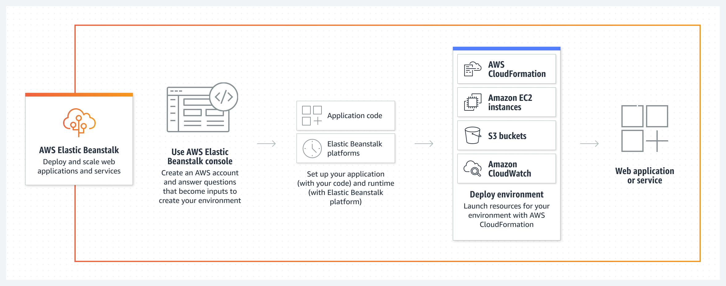 Beanstalk은 다음과 같은 단계를 통해 애플리케이션을 배포하고 관리합니다