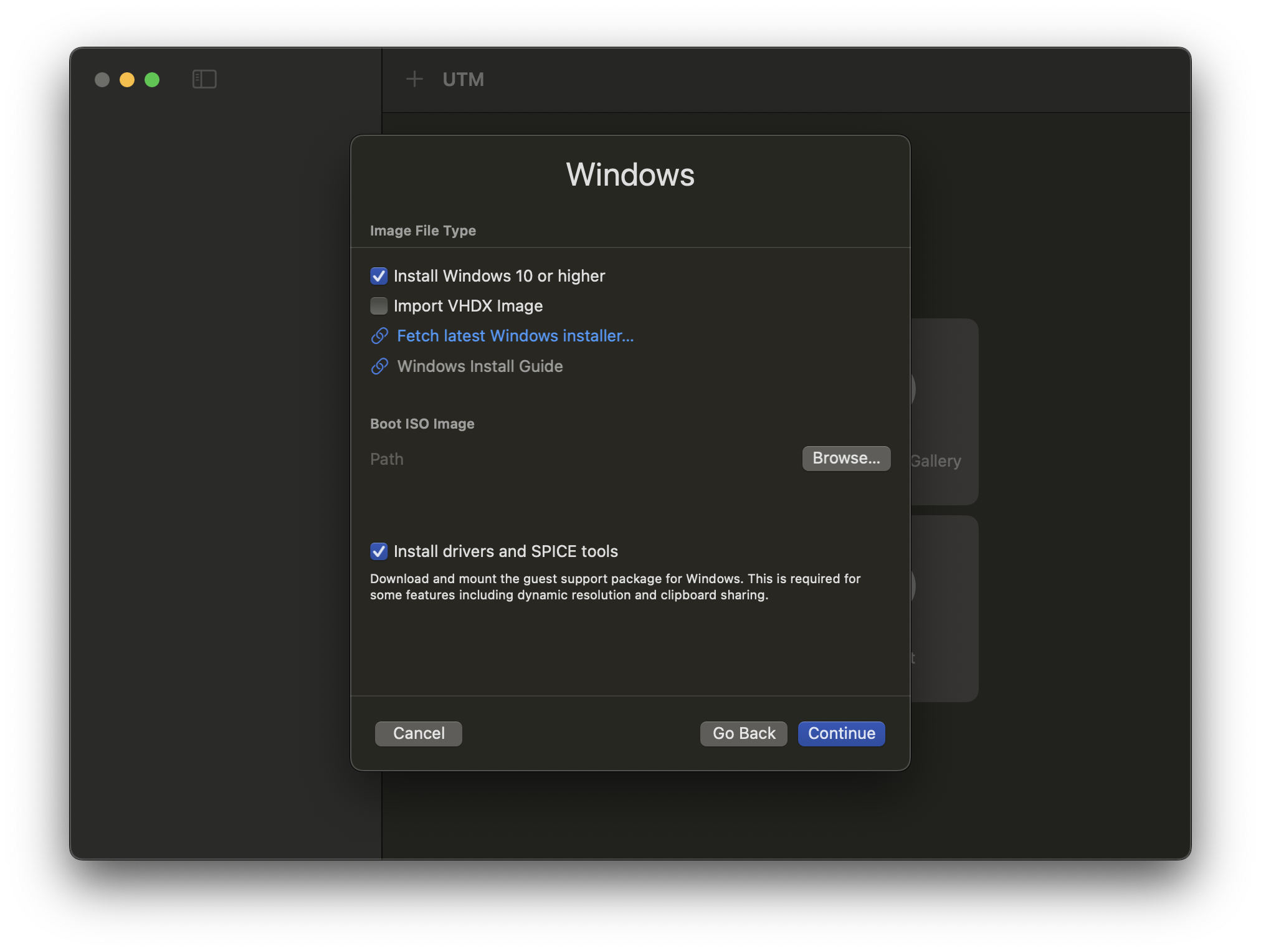 설정이 모두 끝나면, 가상 머신의 입장에서는, 하드웨어가 준비된 상태이고, 이제 utm에서 부팅을 하면, 윈도 설치 과정이 진행됩니다.