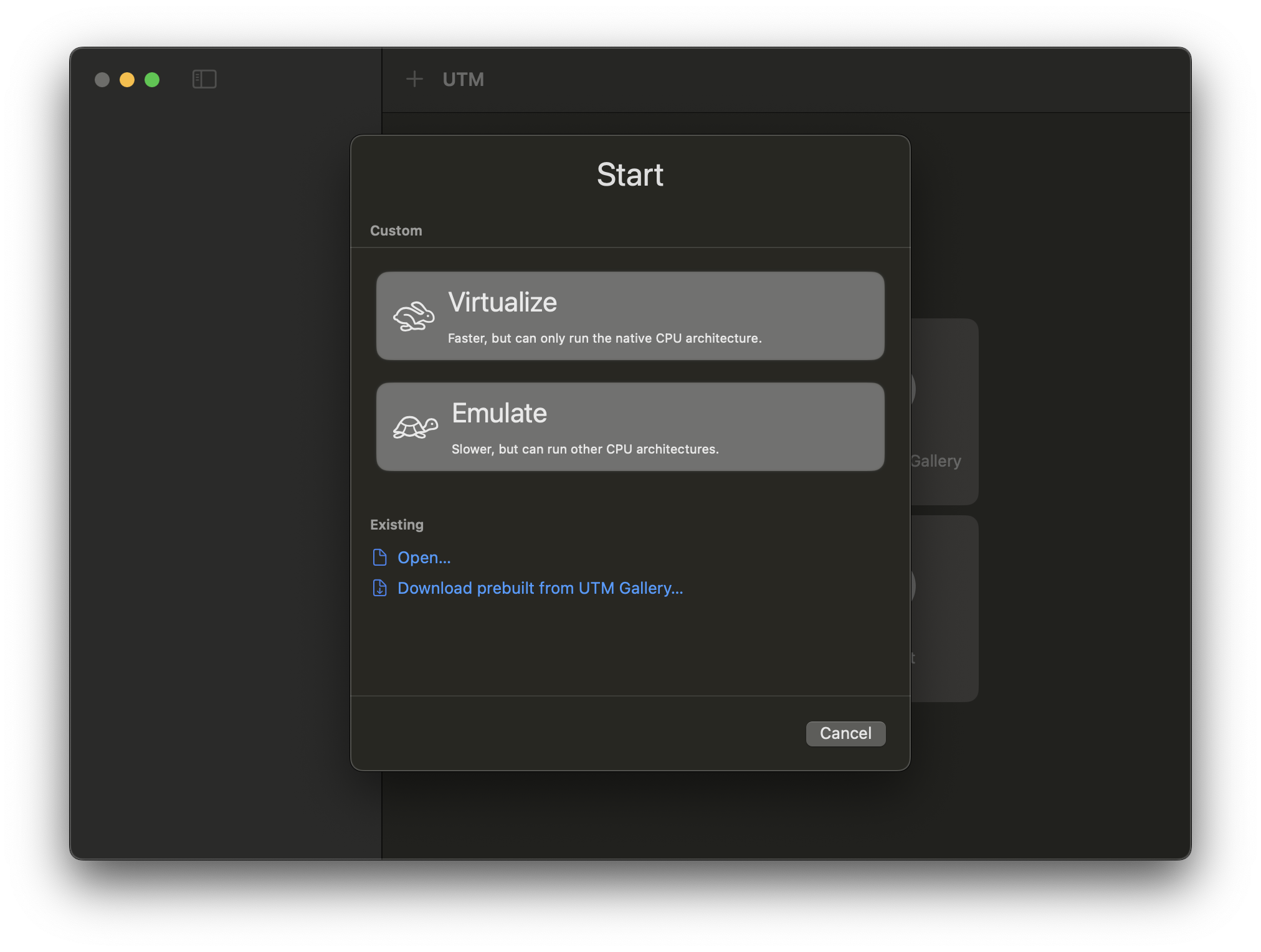 맥이 arm64 칩이므로, Emulate 가 아니라, Virtualize 를 선택합니다.