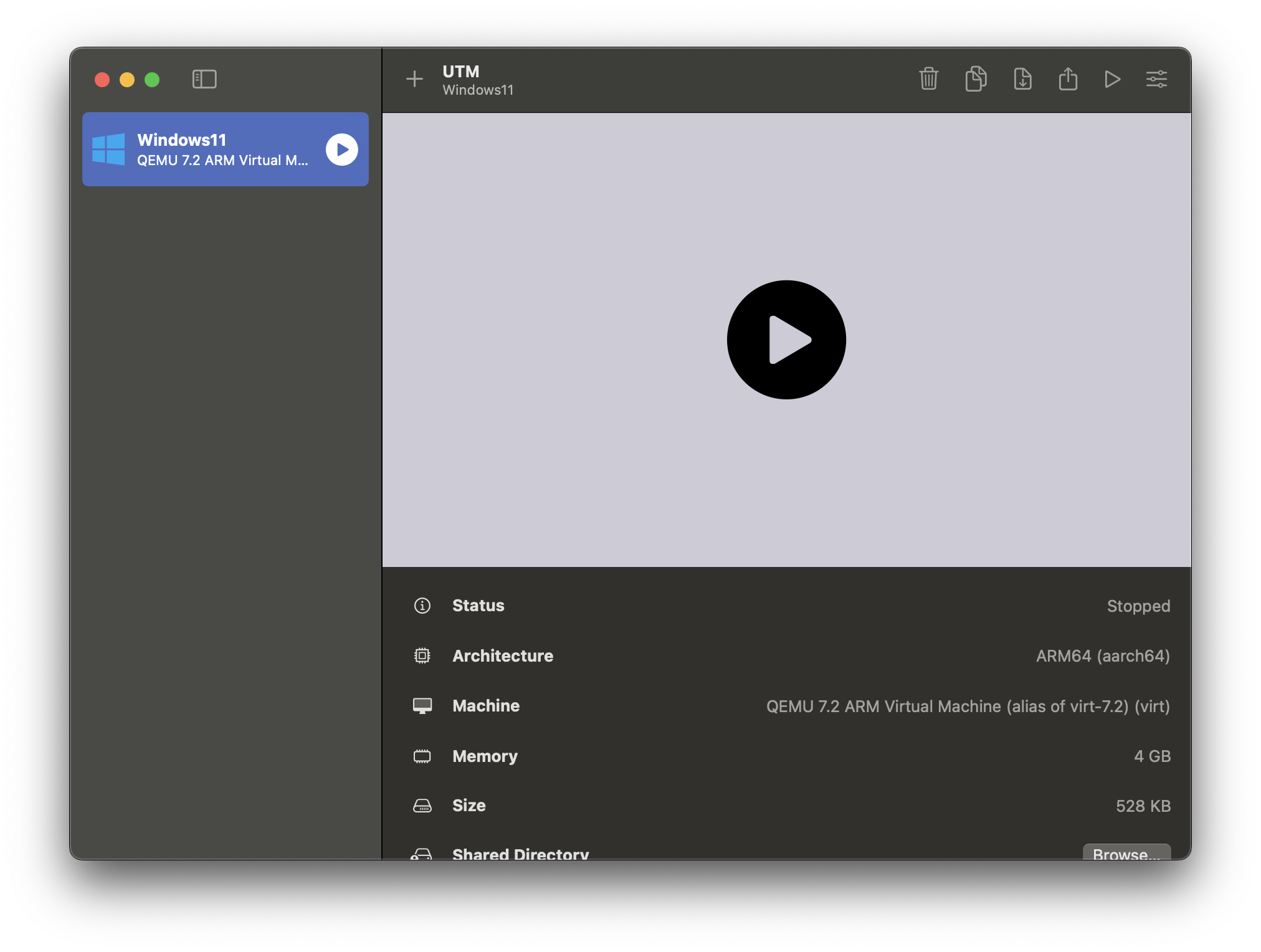 설정이 모두 끝나면, 가상 머신의 입장에서는, 하드웨어가 준비된 상태이고, 이제 utm에서 부팅을 하면, 윈도 설치 과정이 진행됩니다.